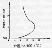 由圖1可見(jiàn),新鮮的空氣經(jīng)風(fēng)口進(jìn)入沖天爐內(nèi)后,碳與氧發(fā)生燃燒反應(yīng),生成二氧化碳,部份生成一氧化碳。隨著燃燒反應(yīng)的進(jìn)行,爐氣中的氧逐漸消失,CO2濃度增加,爐溫也隨之上升。從空氣與焦碳接觸的位置開(kāi)始,至爐氣中自由氧基本消失,CO2濃度到達(dá)^大值為止,這一區(qū)間稱為“氧化帶”。爐氣經(jīng)氧化帶繼續(xù)上升,在高溫缺氧的情況下,使C+CO2=2CO的還原反應(yīng)得以發(fā)展,CO2濃度開(kāi)始逐漸減少,CO的濃度逐漸增加,爐溫逐漸降低。從氧化帶頂面至爐氣中CO2還原反應(yīng)基本結(jié)束的位置,這一區(qū)間稱為“還原帶”。
