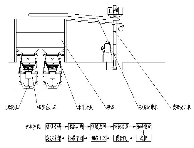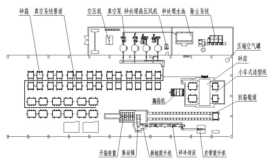 (1)型砂,一般采用干燥石英砂,不加粘接劑,不需混碾,故無需濕法鑄造用的型砂、混制、磁選、松砂等設(shè)備。