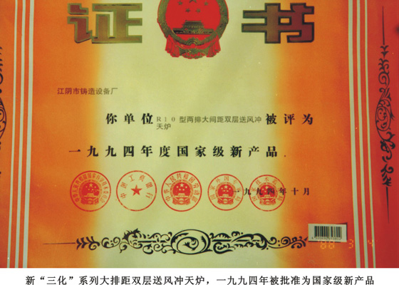 “新三化”系列R11型大排距雙層送風(fēng)沖天爐,產(chǎn)品于89年正式投放市場;