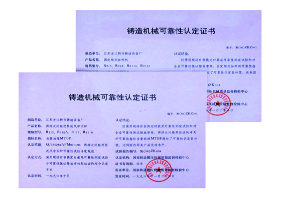 評為“一等”鑄機(jī)產(chǎn)品,并獲“質(zhì)量信得過鑄機(jī)產(chǎn)品”稱號;