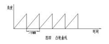 6個切刀輥設計為往復式自由凸輪模式.一個周期為此360°與切刀輥一轉相對應.其凸輪曲線如圖4所示 。
