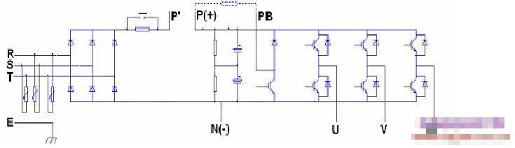 對于變頻器修理,僅了解以上基本電路還遠遠不夠的,還須深刻了解以下主要電路。主回路主要由整流電路、限流電路、濾波電路、制動電路、逆變電路和檢測取樣電路部分組成。圖2.1是它的結構圖。