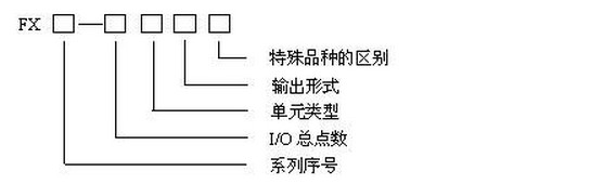 例如:FX2N-48MRD含義為FX2N系列,輸入輸出總點數為48點,繼電器輸出,DC電源,DC輸入的基本單元。
