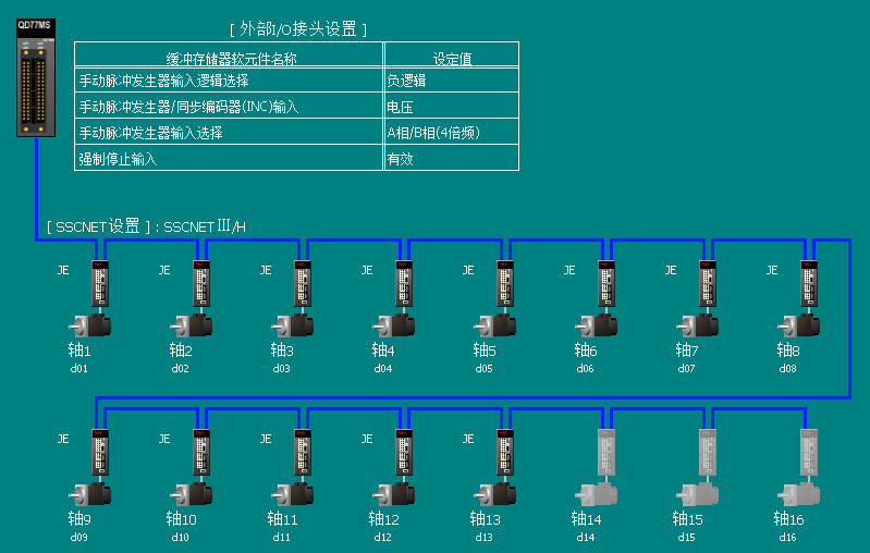 1、 利用《組態化三菱人機界面》對硬件進行設置,直觀性強,便于操作。如圖動態分配使用13個三菱伺服,雙擊生效即可。