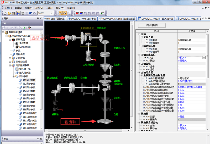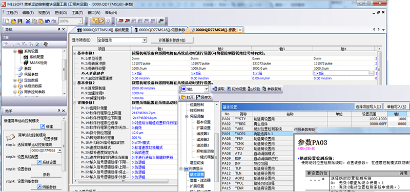 2、 利用軟件集成組態三菱人機界面對模塊參數,OPR回零和伺服參數進行設置,非常簡單方便,無需單獨對三菱伺服進行參數設置,三菱伺服參數和程序一體化,方便備份和讀取/寫入。