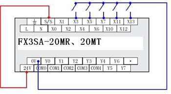 二、FX3SA  FX1S 的輸入接線不同