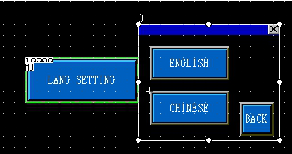 保存一下畫面,再次啟動觸摸屏仿真。這時當按下語言設(shè)定開關(guān)時,對話框出現(xiàn)在了指定位置。