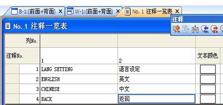 預(yù)覽列 NO:這里的預(yù)覽列為 1 時,是預(yù)覽英文注釋;為 2 時,是預(yù)覽中文注釋。注釋組 NO:因為一開始只建了一個注釋組,所以為 1。