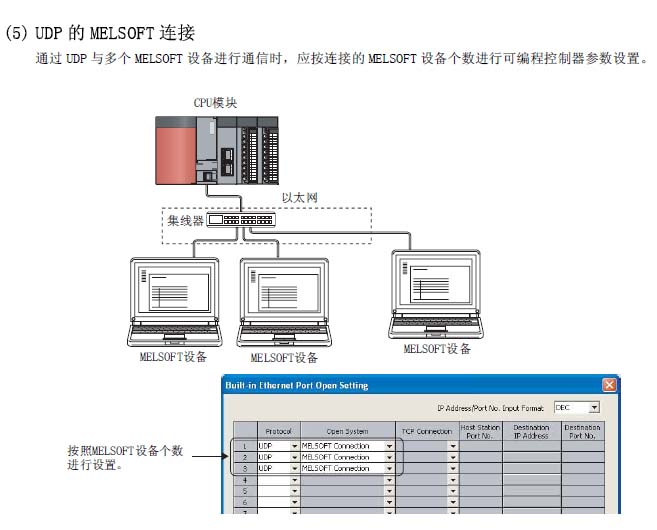 用到幾個GOT,就選設置幾個UDP。三菱QnUCPU用戶手冊(內置以太網端口通訊篇)說明如下
