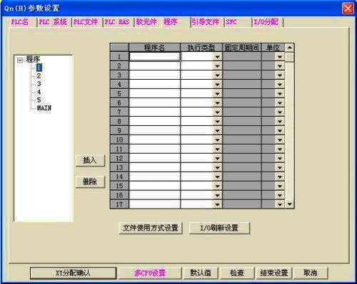 2、在彈出的“CPU參數(shù)設(shè)置”窗口中,點擊“程序”標(biāo)簽,然后在左邊的程序列表中單擊選定新添加的程序項目,然后單擊“插入”,最后再為該程序項目指定“執(zhí)行類型”。