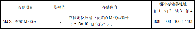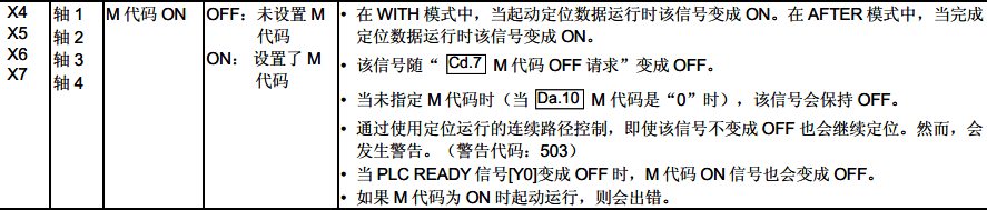 當(dāng)M代碼ON信號(hào)(每個(gè)軸對(duì)應(yīng)X4、X5、X6、X7)變成ON時(shí),M代碼”存儲(chǔ)在下列緩沖存儲(chǔ)器中。