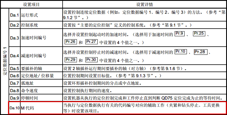 二:在定位數(shù)據(jù)的設(shè)置項(xiàng)目Da.10 M 代碼”中設(shè)置M代碼編號(hào)(1-65535可以設(shè)置)