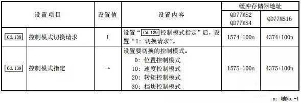 在QD77MS中,默認是位置模式,若需要使用其他模式,則首先需要在Cd.139參數(shù)中設置需要的控制模式,然后將Cd.138設置為1實現(xiàn)控制模式的切換。