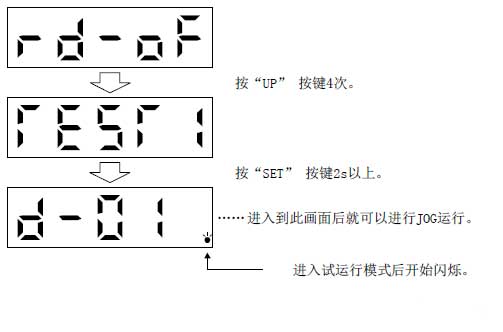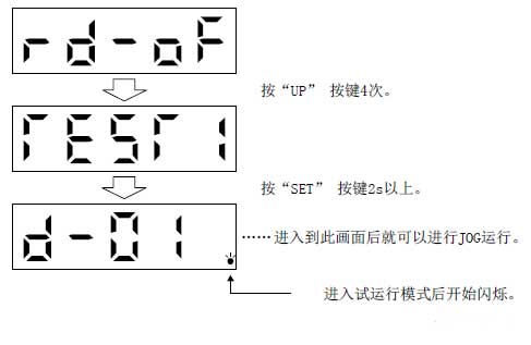 ◎JE-A進入測試運行模式的方法(在伺服本體上操作):