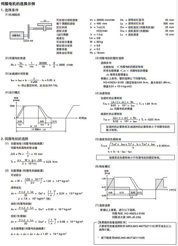 比如下圖是三菱伺服電機(jī)選擇示例,滿滿的一頁都是計算...