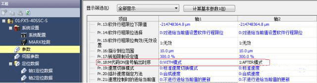 接下來將通過一個簡單編程實例來展示一下M代碼的使用方法。 首先需要說明的是,在簡易運動控制模塊的參數里,可以看到一個Pr.18的參數與M代碼相關。這個參數是“M代碼ON信號輸出時機,并可以看到有“WITH模式“AFTER模式兩個選項。