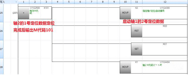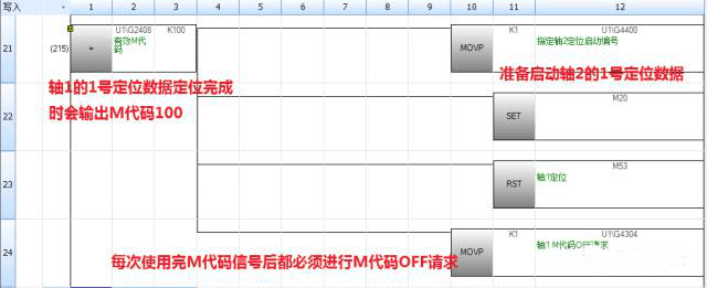 海藍機電擁有專業的plc編程技術,三菱變頻器三菱伺服電機等產品都有應用;為了更好的服務廣大用戶,就為大家解說一個案例。介紹M代碼功能,又稱“M代碼輸出功,提到它可以實現軸1定位完成后自動啟動軸2定位,軸2定位完成后又可以自動啟動軸1定位。