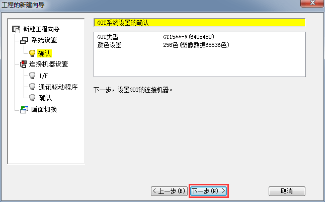 2.1.3 觸摸屏COT系統設置確認,單擊[下一步]