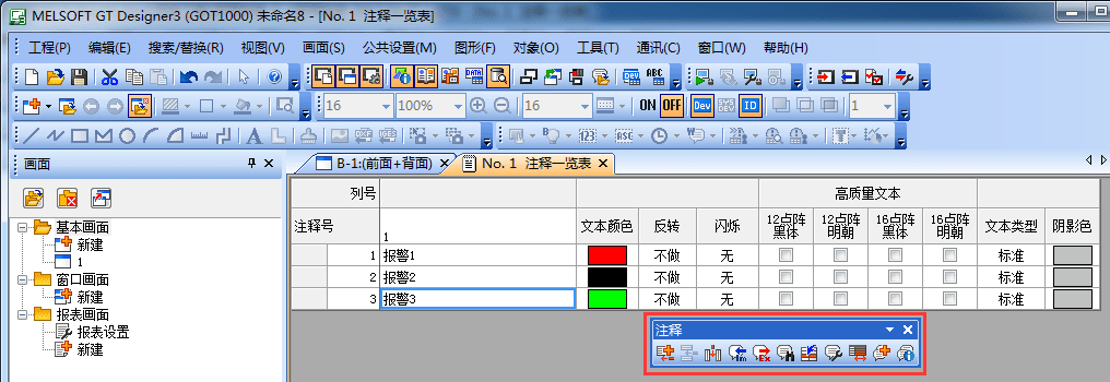 三菱觸摸屏如何添加報警注釋