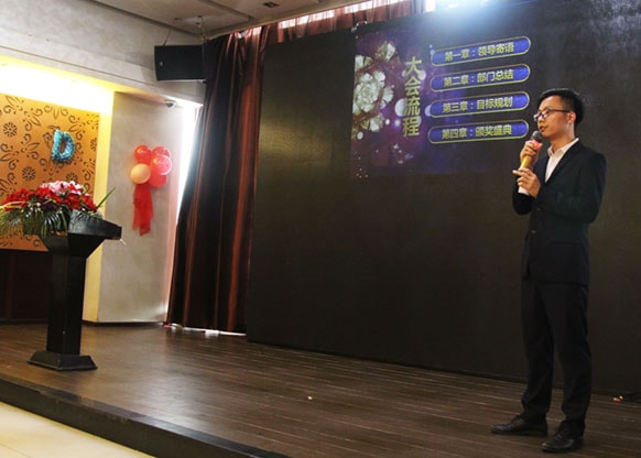 介紹完大會流程,那么接下來2017年海藍機電總結大會正式開始,首先由海藍機電的掌舵人朱總為我們致詞并就2017年工作成績進行匯總為海藍家人指明我們2018年的航向。