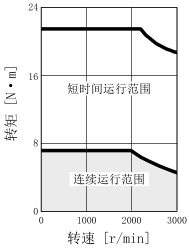 伺服放大器的電源輸入為三相AC200V或單相AC230V時的轉矩特性如粗線所示。