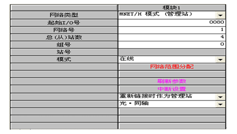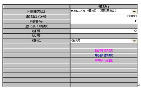 2.軟件設置:通過設置GX-DEVELOPER軟件的網絡參數可對QJ71LP21-25各模塊進行初始化組態(tài),包括起始I/O號、網絡號、從站數(僅控制站可設)、組號、模式、刷新參數等參數。