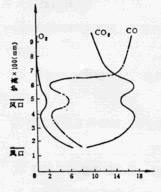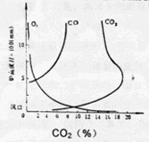 由圖1可見(jiàn),新鮮的空氣經(jīng)風(fēng)口進(jìn)入沖天爐內(nèi)后,碳與氧發(fā)生燃燒反應(yīng),生成二氧化碳,部份生成一氧化碳。隨著燃燒反應(yīng)的進(jìn)行,爐氣中的氧逐漸消失,CO2濃度增加,爐溫也隨之上升。從空氣與焦碳接觸的位置開(kāi)始,至爐氣中自由氧基本消失,CO2濃度到達(dá)^大值為止,這一區(qū)間稱為“氧化帶”。爐氣經(jīng)氧化帶繼續(xù)上升,在高溫缺氧的情況下,使C+CO2=2CO的還原反應(yīng)得以發(fā)展,CO2濃度開(kāi)始逐漸減少,CO的濃度逐漸增加,爐溫逐漸降低。從氧化帶頂面至爐氣中CO2還原反應(yīng)基本結(jié)束的位置,這一區(qū)間稱為“還原帶”。