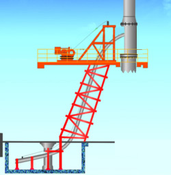 固定爬式加料機(jī)是我公司為實(shí)現(xiàn)加料自動(dòng)化而研發(fā)的,其弧形導(dǎo)軌采用槽鋼制作,襯板采用耐磨鋼板,兩根導(dǎo)軌同時(shí)冷彎制作,保證弧度、平行度及軌距一致。軌道從下到上,形成完整的S形,保證加料小車運(yùn)行時(shí)無(wú)卡滯、停頓。卷?yè)P(yáng)機(jī)電機(jī)制動(dòng)采用液壓推桿,避免了電磁式因經(jīng)常動(dòng)作而發(fā)熱燒毀的缺點(diǎn)。